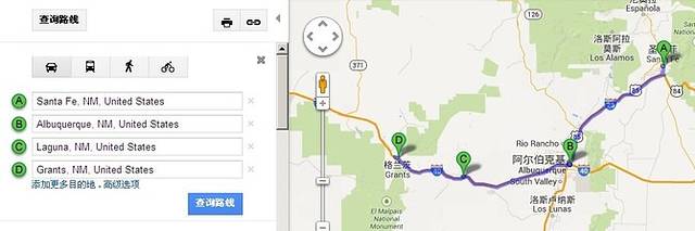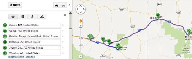 圣达菲--格兰茨,途经阿尔伯克基-拉古娜,到格兰茨,全程高速。