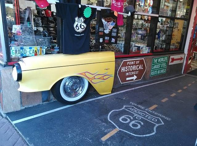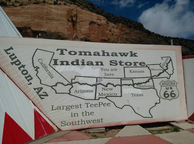 由于昨天下午到达温斯洛,光线不好,早晨先去街角拍照买了纪念品然后再出发。途中经过陨石坑(Meteor Crater)、双枪镇(Two Gun)未入。看一眼双箭交易站(Twin Arrows Trading Post)。