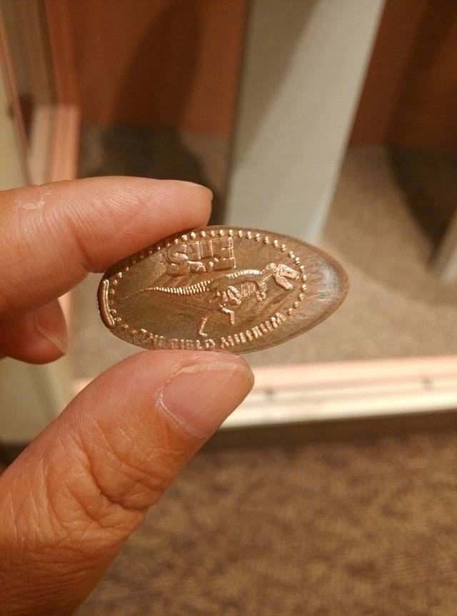 第一次见到压制硬币做纪念品的机器,压了个Sue的图案。