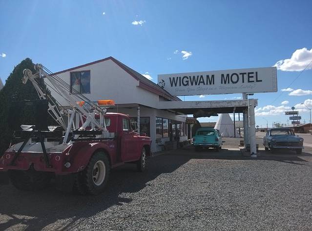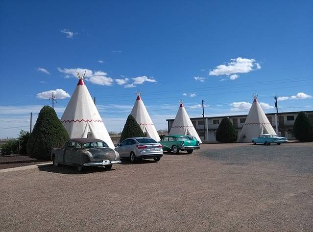 霍尔布鲁克,1950年建的著名的帐篷汽车旅馆(Wigwam Motel)。旅馆的空地上停了十几辆老式汽车。还记得《汽车总动员》里律师莎莉开的帐篷旅馆吗?就是这里哈!