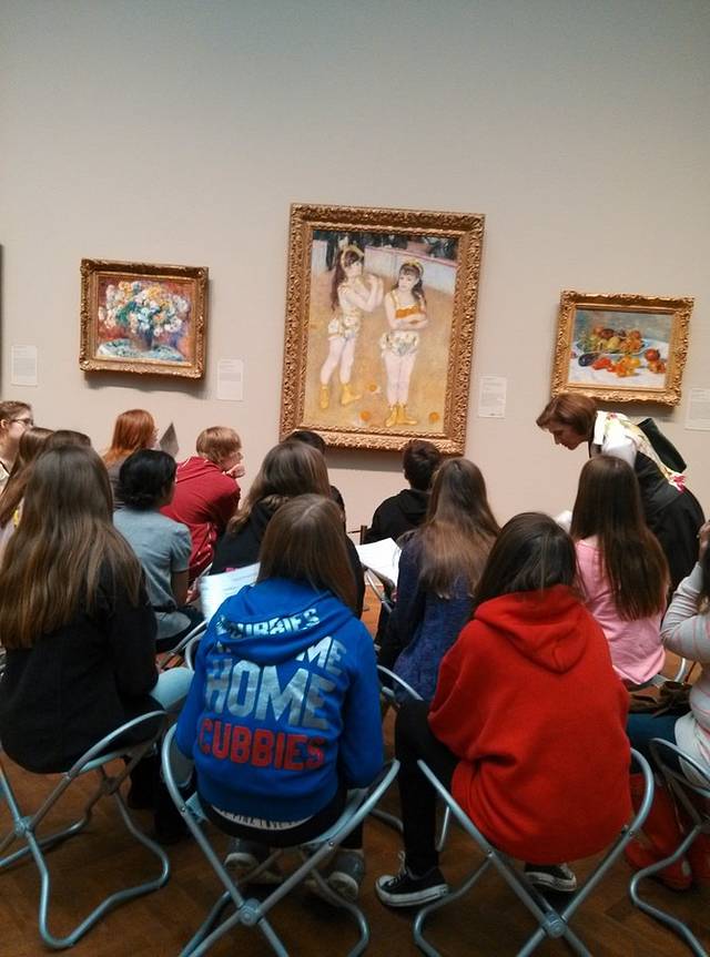 早晨看窗外淅淅沥沥下雨,心情跟着阴郁起来,裹在被子里不想出屋。耗到中午起床,把能穿的衣服都套身上,去芝加哥美术馆参观,成人票23美金。直奔二楼印象派展厅,看到很多学生坐在世界名画前上鉴赏课,这才是素质教育。二楼一圈又分好多小厅,都走迷糊了。视觉盛宴,语言没法表达,绝对值得欣赏一天!匆匆走一圈,漏掉不少。定了4点提车,时间不够,其他展馆都没看,遗憾!