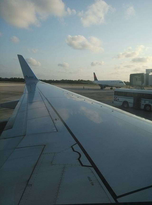 机票是两段航程,坎昆--达拉斯,达拉斯--芝加哥。晚上9点多到达拉斯,第二天早晨不到7点起飞,所以选择机场过夜。