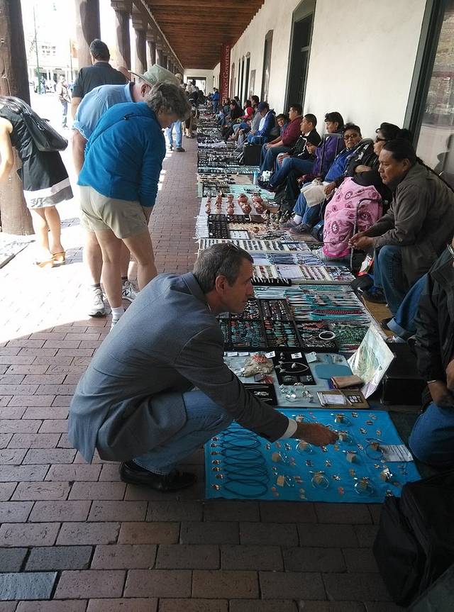 凑巧穿了我的大裤子舒服逛街,款式遭到无数表扬,都问我是不是在圣达菲买的。还有上面的图案和印第安的很接近,一家店主说非常象什么什么山上印第安石头上的雕刻。路上和一个老太太擦肩而过,她突然转身跟我说,我很喜欢你的风格。她戴了一串钱币做的项链非常有特色,我当然必须夸赞一下。聊了几句她表示对我一个人开66大感惊奇,热情邀请我参加他们朋友的聚会午餐或者晚餐。我说午餐后我就离开了,她说我去前面办事,你先逛,一会我们在这里碰面。忘记约定时间,我逛回来看没人又着急走,索性爽约离开,真是抱歉。我想我又错过了一次有趣的经历。