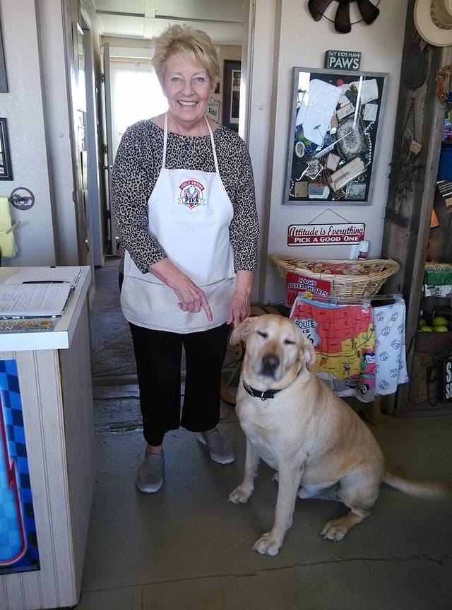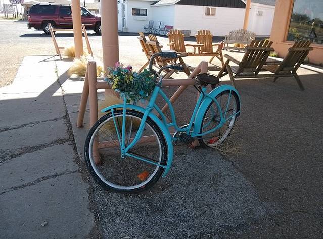 中途咖啡店旁边就是这家温馨甜蜜的小店。《汽车总动员》里有个角色Flo就是以她为原型,老人送了我一张她签名的Flo明信片。店外的红色皮卡随便涂鸦,我在挡风玻璃上写了我的名字。