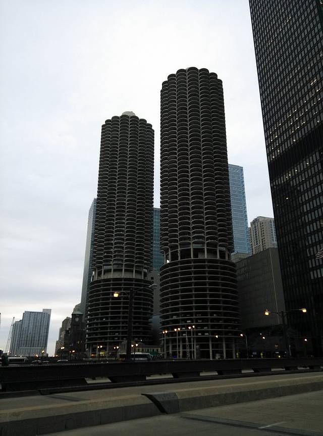 著名的玉米大楼。中空的下面几层都是停车楼,不知道有没有手潮的掉下来过。