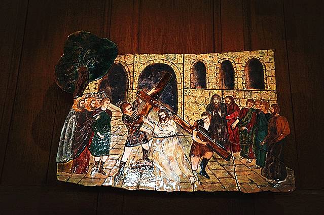 比如现在正挂在saint-Denis-du-saint-sacrement教堂入口处的那幅艺术品,用硅胶类的材料,制作出了巨幅的画。