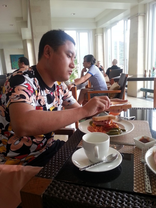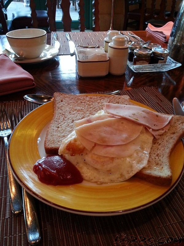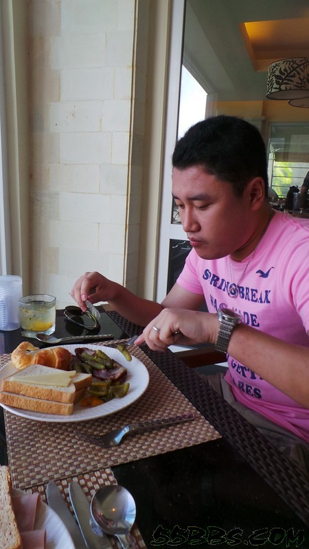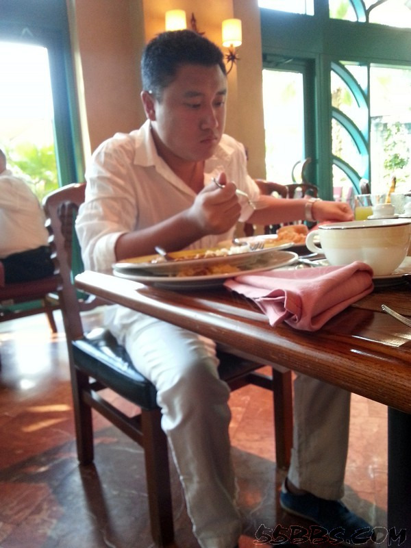 下楼去吃早餐,我敢说这里的早餐种类是我活这么大迄今为止见到过的最丰盛的,没有之一!种类多的我愣是端着盘子站在原地不知如何下手不过……最后还是拿了我的老三样~面包片,火腿,煎鸡蛋我老公说:“婆,有点儿出息行不?”……