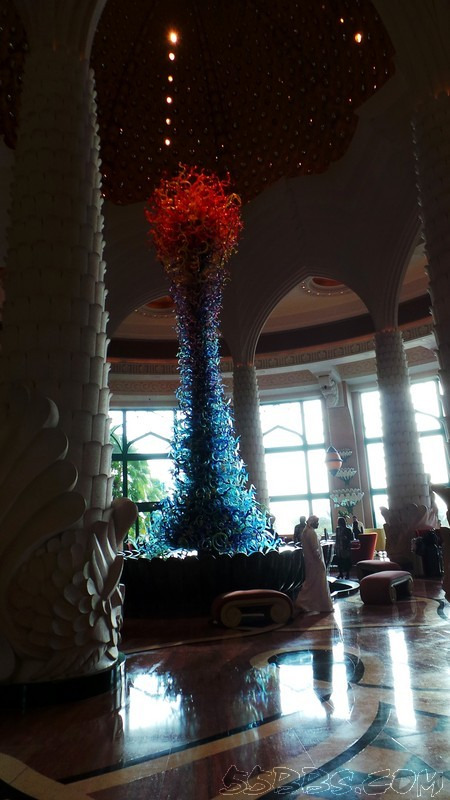 棕榈岛亚特兰蒂斯度假酒店由世界最顶级的建筑设计师、室内装潢设计师、庭院设计师倾力合作完成。气度非凡的建筑整体风格沿袭古波斯及古巴比伦风貌,内在诠释亚特兰蒂斯的精髓 - 奇迹、海洋、探索,同时融入阿拉伯元素。世界知名玻璃工艺大师Dale Chihuly授命于Kerzner集团公司主席Sol Kerzner先生,为亚特兰蒂斯设计制作了其在中东地区的第一部作品。这部花费了近两年时间完成的杰作,高约10米,由3000多片彩色的吹制玻璃组成,热烈的橙色、红色和宁静的蓝色、绿色组成了一幅绚烂的图画。