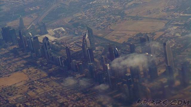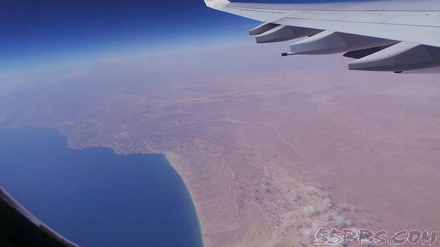又飞了一会儿,看见了沙漠与大海的分界线,迪拜,我来了