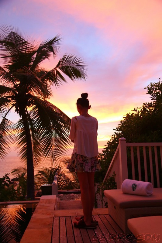 被这么美丽的夕阳所陶醉了,于是扔下疲倦,拉着老公就来到了悦榕庄的海边