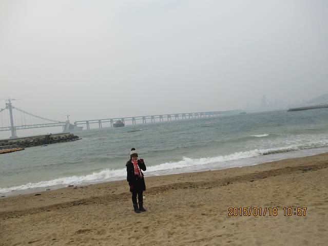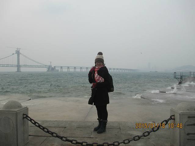 这是我第二次去星海广场了,果然冬天的海是别有一番风味的,空气很冷,海风很大,但是海风吹在脸上却没有凛冽的感觉,可能是最近大连的天气也不冷吧。冬天的海边人也很少,难得在沙滩上也能体验到这样的宁静。静静的站在高台或岸边,听着清脆的海浪声,眺望海的另一端,一望无垠的平静与坚强,感觉心都静下来了!