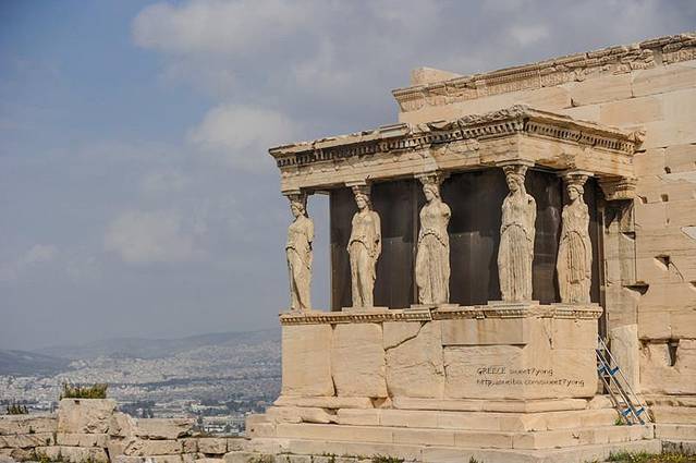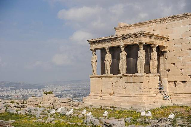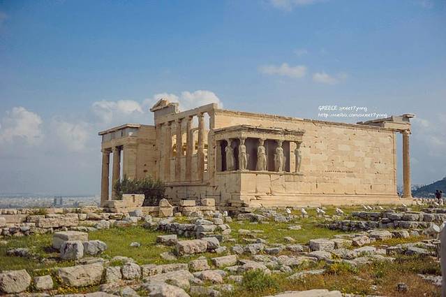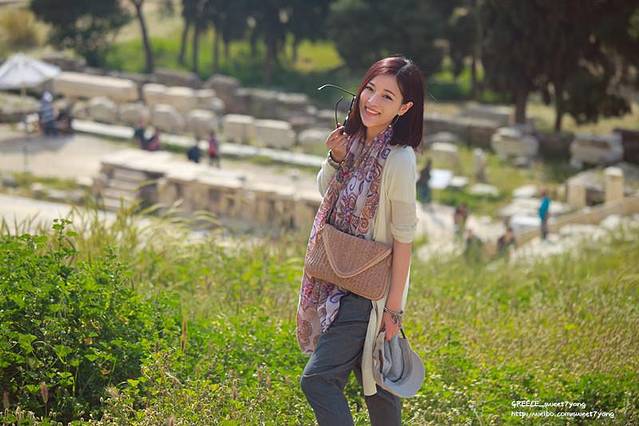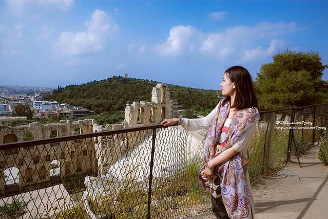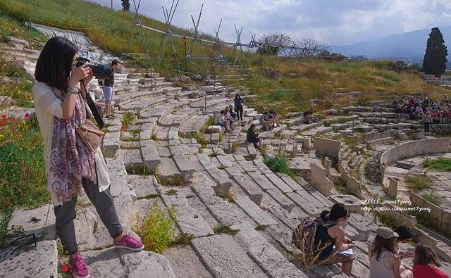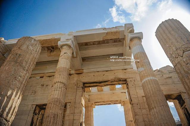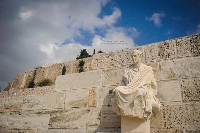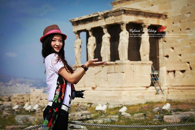 在雅典,你随处可以看到很多石柱建筑,要注意的是,不要去抱它们,也不要对它们做什么动作,在当地人看来,那些都是亵渎神明的举动。所以,规规矩矩坐着拍吧。