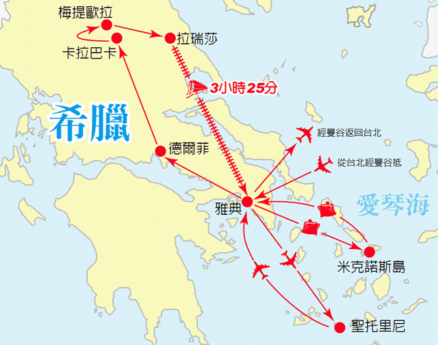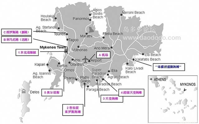 网上找了张地图,雅典-圣托里尼-米克诺斯的位置就如图