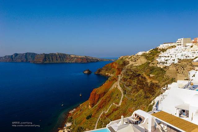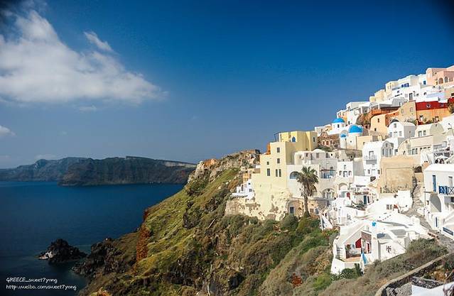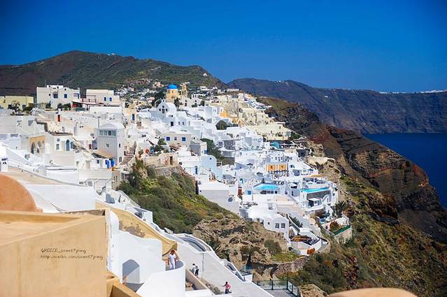 这里也是全球著名的蜜月圣地,来到这里的大部分是情侣,连空气都氤氲着甜蜜的香气,于我而言,是属于我和闺蜜的,呵呵。这篇游记我决定定义为闺蜜那篇的续篇,从不同的视角,用不同的风格来演绎——我们在希腊的每一个晴天。
