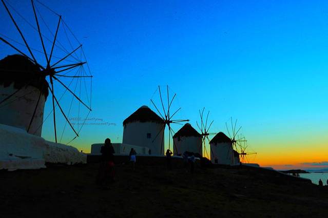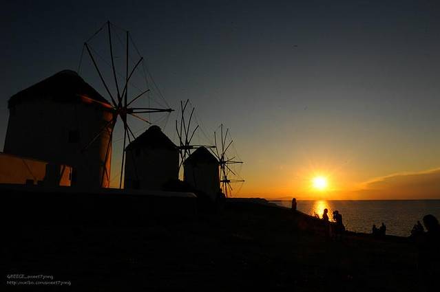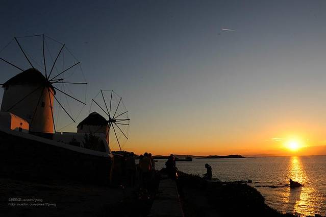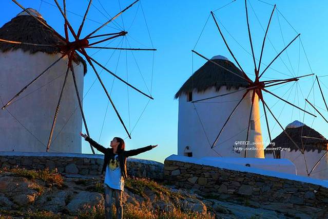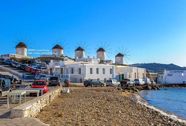米克诺斯岛主要是去风车阵,就在米克诺斯镇旁,你到了米克诺斯镇,大风车自然而然就在眼前啦,那里也被称为小威尼斯,我超级喜欢那,赞赞赞,一定要去看日落哦。