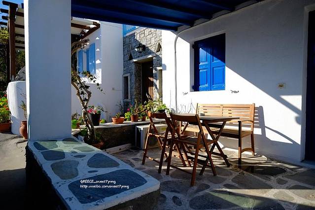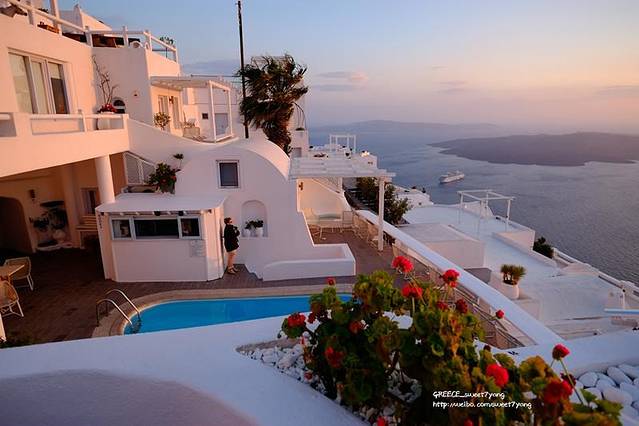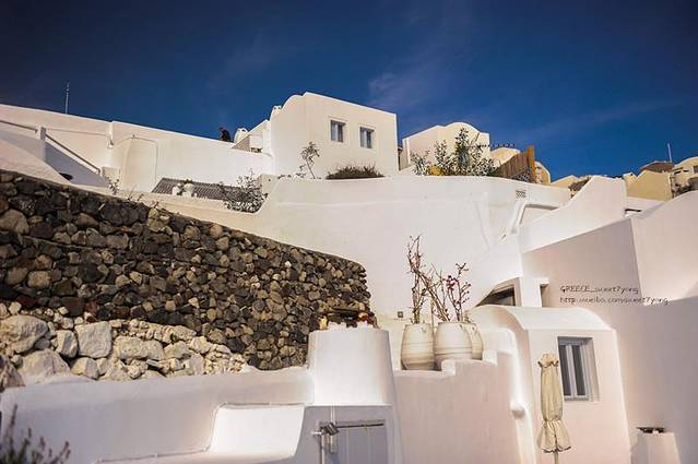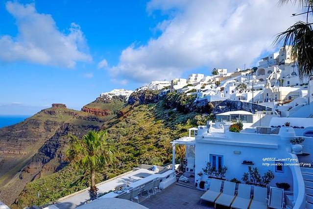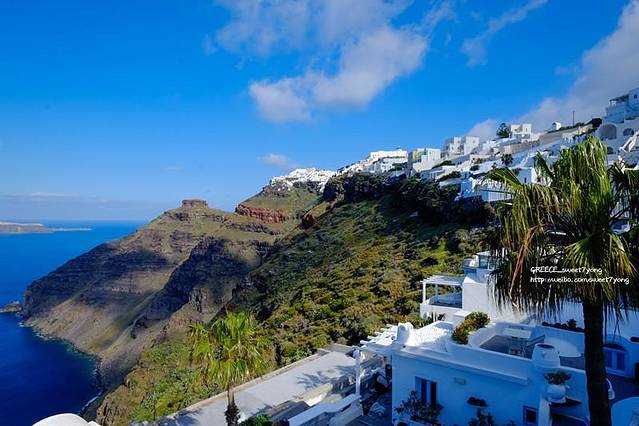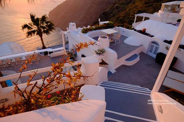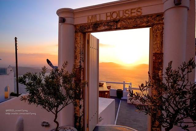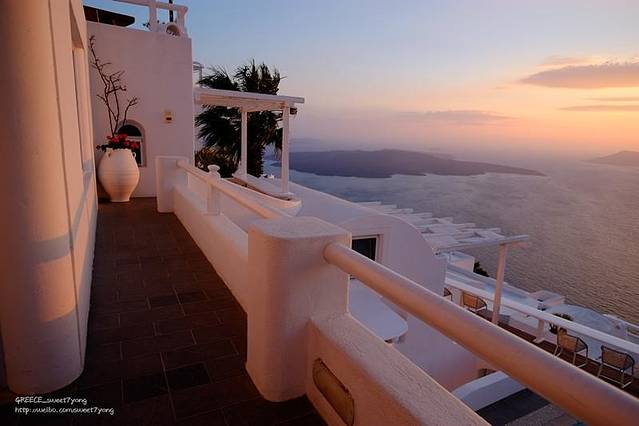 这个酒店是咖啡的朋友推荐的。性价比不错。如果你想走走海边步道,如果你不住OIA,而想逛逛菲拉,住MILL是很好的选择。它位于Fira-Firostefarli-Imerrovigli山崖步道附近,离国家地理杂志的蓝顶教堂也很近,其实它的确切位置是Firostefarli镇,但它有着无敌海景,傍晚在自家门口就能看到日落,很赞。这个酒店我放到后一天详细说。
