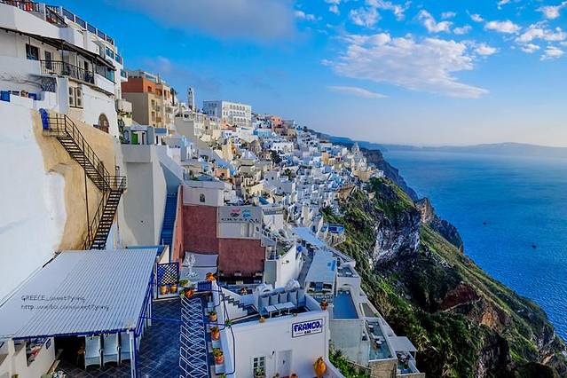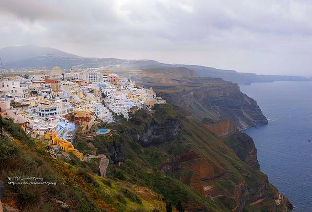 我们租车是在机场,赫兹在菲拉是有还车点的。所以在菲拉还车后,逛逛,再沿那条步道走回旅馆。
