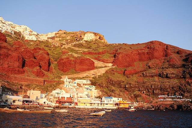 D3:4月7日 早晨在酒店享受下闲暇时光,然后自驾圣岛。可以从岛的最南端的灯塔开始,一路按顺序经过红沙滩(kokkini Beach)、遗迹(Ancient Akrotiri )白沙滩(Perissa Beach)、黑海滩(Kamari Beach),可以开车到岛上最高的山顶(Mt Profitis)。因为当天是自驾为主,建议租心仪的甲壳虫(最后没租到)。日落从菲拉开车去伊亚大约为25分钟。从停车的地方走到看日落的地方大约20分钟。留够时间!