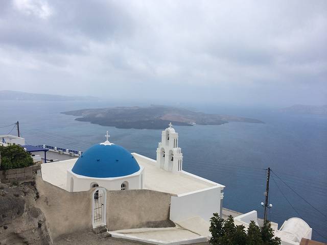 从菲拉一路向北有一条经典徒步路线——Fira-Firostefarli-Imerrovigli,从一开始我发的地图中能看到具体的位置,这一路都在山崖边,很美,全程大约45分钟。著名的圣玛利亚蓝顶教堂也在那条路上(事实上就在我们酒店附近),因此这个酒店很推荐大家哟。