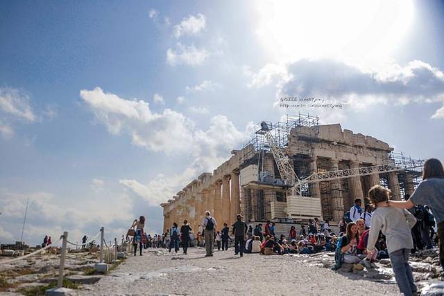 而今,那千万孩子中的一个长大后一个人背包来到希腊,终于见到那在心中华丽了好久神秘了好久也庄严了好久的神殿。这种感应与在巴塞罗那看到圣家堂时的情形类似。