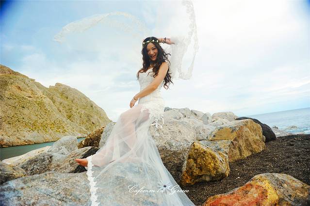 从几年前开始,我和闺蜜咖啡妹都开始致力于拍照事业(在这我就不称之为是摄影了,毕竟那比较高大上的境界),可以说这是我俩在繁冗俗世生活中的精神小支柱。刚拿起相机的日子,特别喜欢拍大山大河,总觉得生活在别处,巴黎的塔、西藏的天、布拉格的情,后来发觉,在按下快门的瞬间,其实我们是无法理解它们的,只能像仰视圣迹般的显示自我的虔诚,却永远深入不了它们的核心……每次回来看照片,给人感动的也不是那些迷人的风景,而是一个个带着微笑的面容。渐渐的开始爱拍人,无论是旅行图中那些形形色色的笑脸,或是自己。这次的目的地是希腊,对于女孩子来说,太适合拍照了,所以从做行程开始,就已经定义为一次华丽丽的旅拍,咖啡笑称:婚纱、长裙、机车皮衣、比基尼,一个都不能少。哈哈