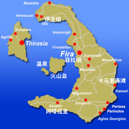 oia镇在圣托里尼岛地图的上端,圣岛地图,猪腰子