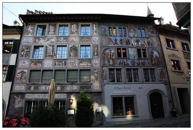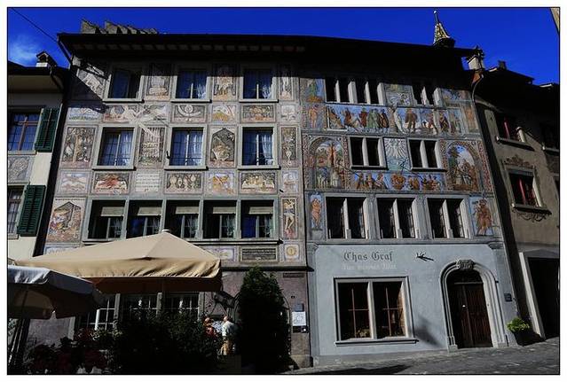 这两个地方我都非常喜欢,当然最迷人,最吸引人的除了风景,就是这里的壁画,他们甚至更抢去了美景的风头,招摇过市般吸引着所有的眼球。在这两个地方,如果有时间,就去欣赏每一栋房子,每一面壁画,你能从中感受到瑞士人的审美,瑞士人的想象,瑞士人的创作灵感以及瑞士人的幽默。
