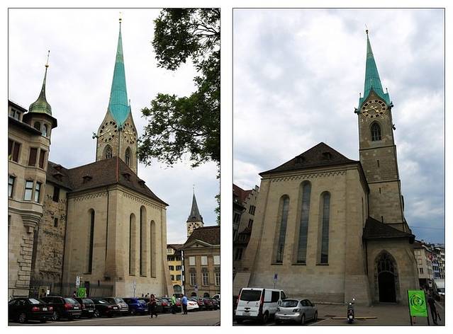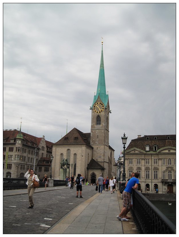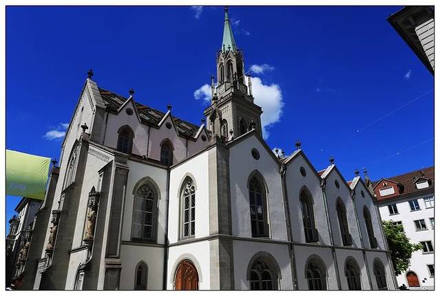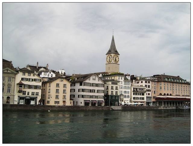 圣彼得教堂——拥有欧洲最大的钟表。它也是苏黎世最古老的教堂,在857年的文献上面就已经出现了这座教堂的名字。这座教堂最著名的地方是1534年修建的钟楼,钟楼上的钟面直径是8.7米,时针长3米,分针长4米,是欧洲最大的时钟之一。