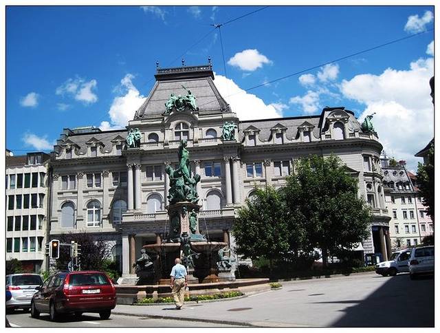 在车站广场上有一座喷泉铜像,这就是瑞士铁路大王埃夏的雕像。他创立了圣哥达铁路公司,并且促使瑞士信用贷款银行得到很大发展,后来还就任过苏黎世工科大学的校长,是一位为苏黎世的发展做出巨大贡献的人物。