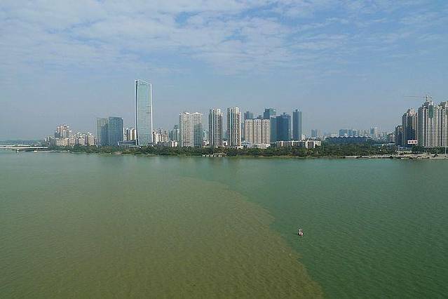 看看珠江的风景,两岸的工厂远没有黄浦江那么密集。
