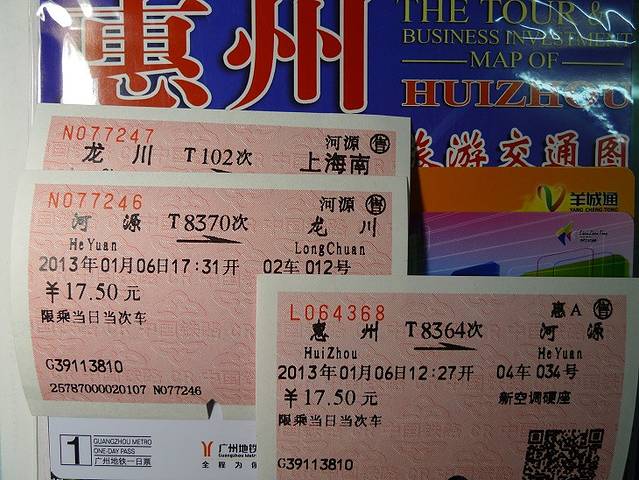 我想打一张惠州经河源到龙川的通票,mm说什么也不会,叫来她的师傅拨弄了一阵电脑说是不能打,可能是因为广梅汕的原因吧,总之最后还是买了分段票。