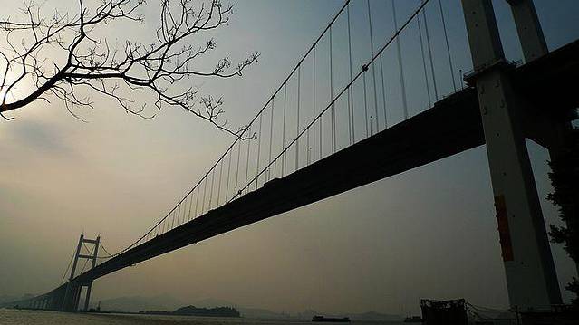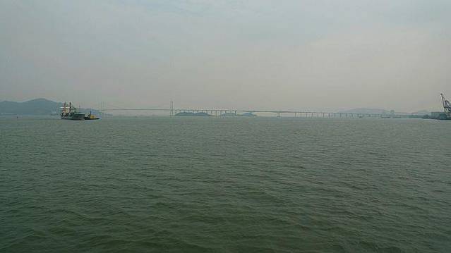 钱塘江的喇叭口,从左至右依次为嘉绍大桥、江东大桥、下沙大桥和彭埠大桥(钱江二桥)。