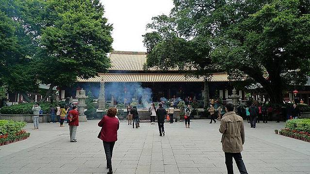 坐地铁到西门口站下,出站后直接走上光孝路,沿马路走约2百米,就到光孝寺了。光孝寺在西汉武帝时,是南越王赵佗玄孙赵建德的家宅。三国时一个被贬到岭南的重臣改建寺庙,明朝时才得此名。
