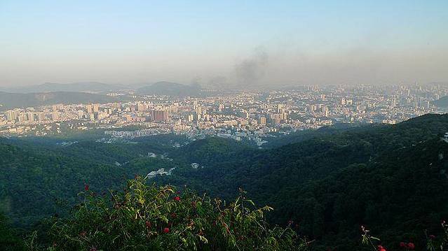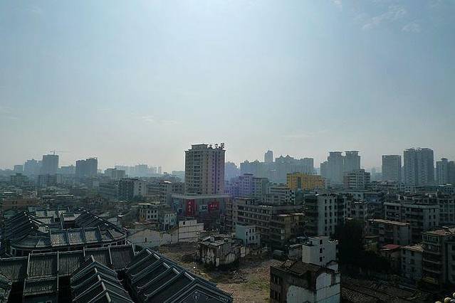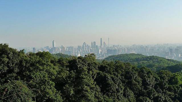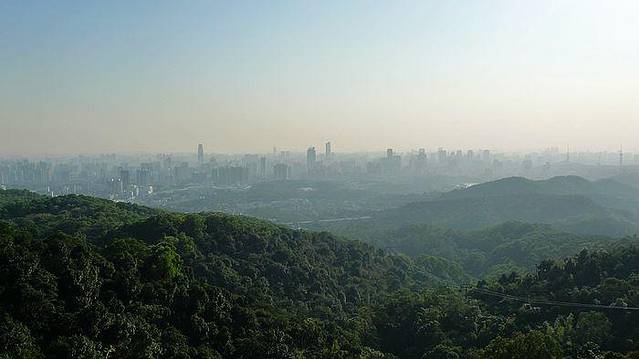 中国的大城市空气都很糟糕,傍晚望不见羊城啊。