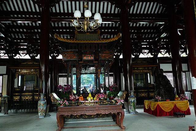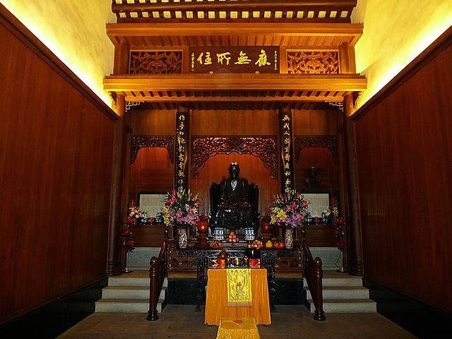 六祖堂内当然也供有惠能的铜像,高1.8米,重约1吨,法貌庄严,垂目坐禅,栩栩如生。