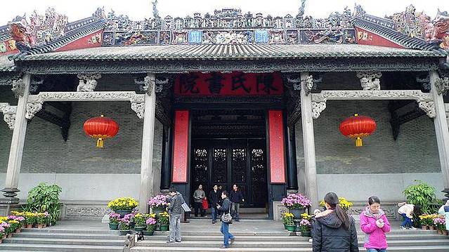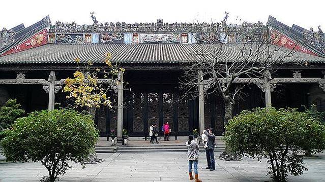 陈家祠又称“陈氏书院”,始建于清光绪十四年(1888年),光绪二十年(1894年)落成,它是由清末广东省七十二县的陈姓联合建造的,是广东省著名的宗祠建筑。陈家祠堂的建筑结构可分为三轴、三进,建筑面积达8000平方米。