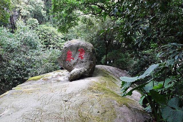 飞来石,地处一定斜度的石崖旁,石头上大下尖,耸立的姿势显得特别险竣!曾有不少游客看过之后,都担心这块石头会滚下来。然而,事实上它已在日、月、风、雷、雨、电中经历了漫长的岁月,经过无数游客的攀爬,仍一直巍然不动。