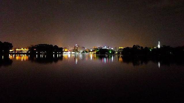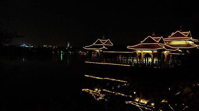 西湖夜景灯光暗淡,并不张扬,有几分小城市的清新和优雅之气。今天的惠州还有一个名字叫做“惠民之州”。