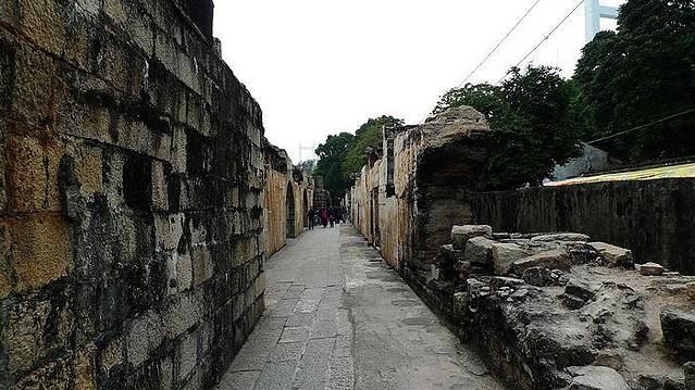 2002年7月初,北京路步行街在整饰工程路面开挖过程中,出土了大量砂岩石条与古城墙砖。经过两个多月的抢救性挖掘,掘出了自南汉以来共五朝11层的路面和宋代拱北楼基址。这就是千年古道遗址。