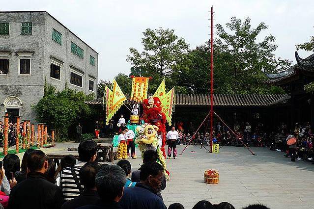 看完纪念馆,不仅了解了广东的武术文化,还因为黄飞鸿生前擅长舞狮而看了一场表演,虽说这表演商业气息太浓了。