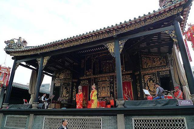 华南地区最著名的古戏台万福台,与祖庙正殿遥相呼应,据说其建造目的是上演粤剧(大戏)给对面的北帝观看,以酬谢北帝的保佑之恩。