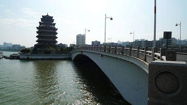 东新桥原本是“四十舟为二十舫,铁锁石碇,随水涨落”的浮桥,是沟通惠州府、县两城的重要桥梁,为苏东坡谪居惠州时协助道士邓守安所筑,现在则变成一座钢筋混凝土结构的大桥。