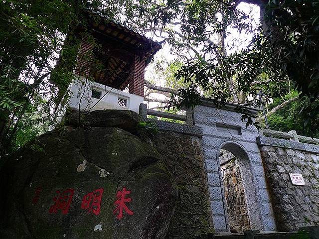 朱明洞天是由几座山峰和一些古树自然环抱而成的小天地,道教称之为洞或洞天。它座北向南,整个洞天高出地面十米左右。昔日,这里原是一幢幢书院精舍,据说安期生,朱灵芝、葛洪、湛若水等均到过朱明洞修道炼丹和传授道学,据记载:“讲学之盛,海内莫过于罗浮者”。