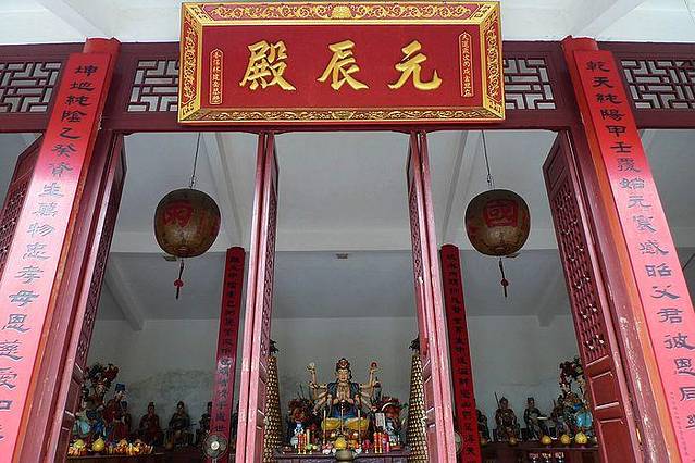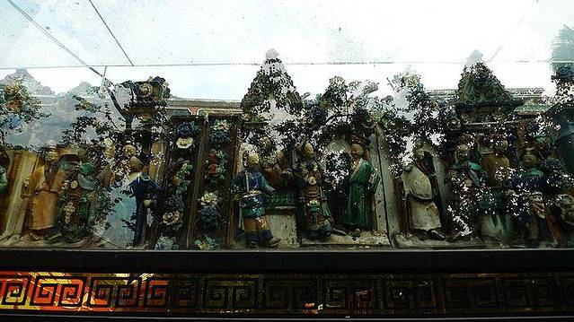 千年冲虚古观,座北向南。“冲虚古观”四个大字,为宋元祐二年(公元1087年)哲宗赐额。看见宋哲宗的书法我就很自然地想起他那著名的艺术天才儿子宋徽宗,这家伙什么都适合当,就是不适合当皇帝治国,当然祖孙三代的书法都是在中国历史上赫赫有名的。古观屋顶上是由清代佛山石湾著名陶工吴奇玉精心塑制的各种神仙传说、历史典故的殿脊雕塑,使得这座道观更显庄严肃穆。