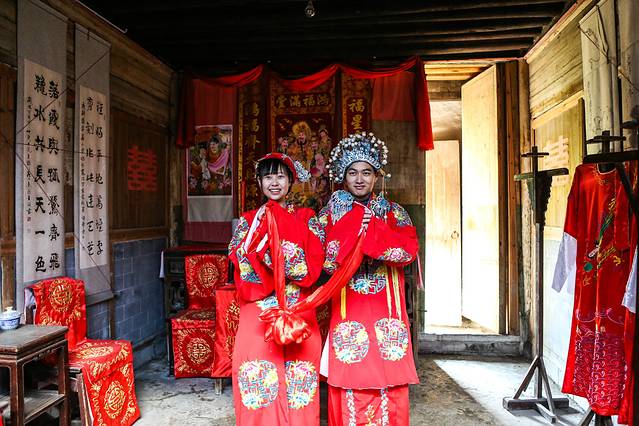 两个小伙伴体验古时候新人成亲
