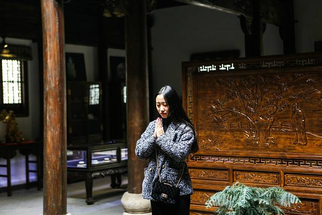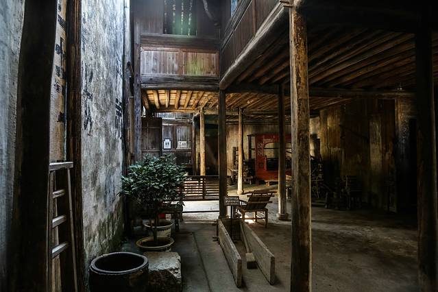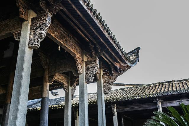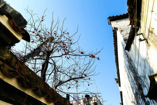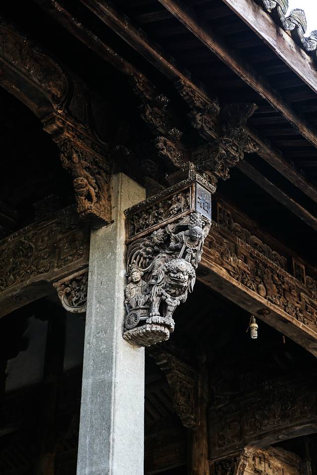 进村的时候,日头正好,冬日游这些江南古村,别有一种沉寂的美。小村深藏山中,一条老街贯穿全村,两边坐落着格式讲究、雕花精美的明清古建,有金大宗祠、和园、象贤厅、滋澎堂,是全国第一个以村落为单位的全国重点文物保护单位。其中一座望云楼距现在已经有700多年的历史,代表了元代建筑的精华,有着典型的“肥梁胖柱”和精美的木雕,按导游的说法,这是“江南黄金屋,一楼值千村 ”。