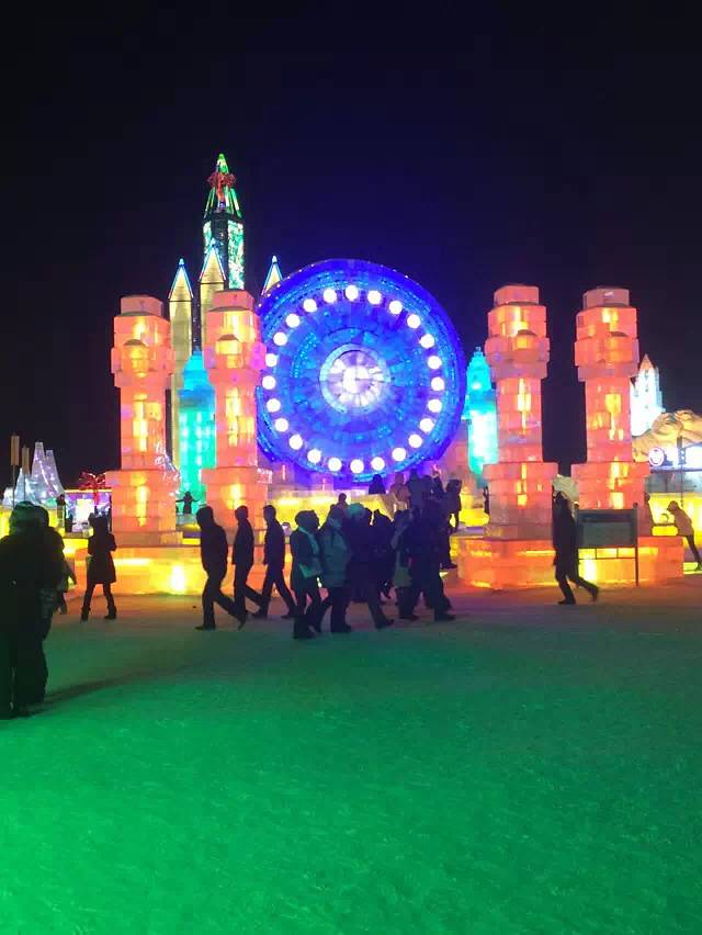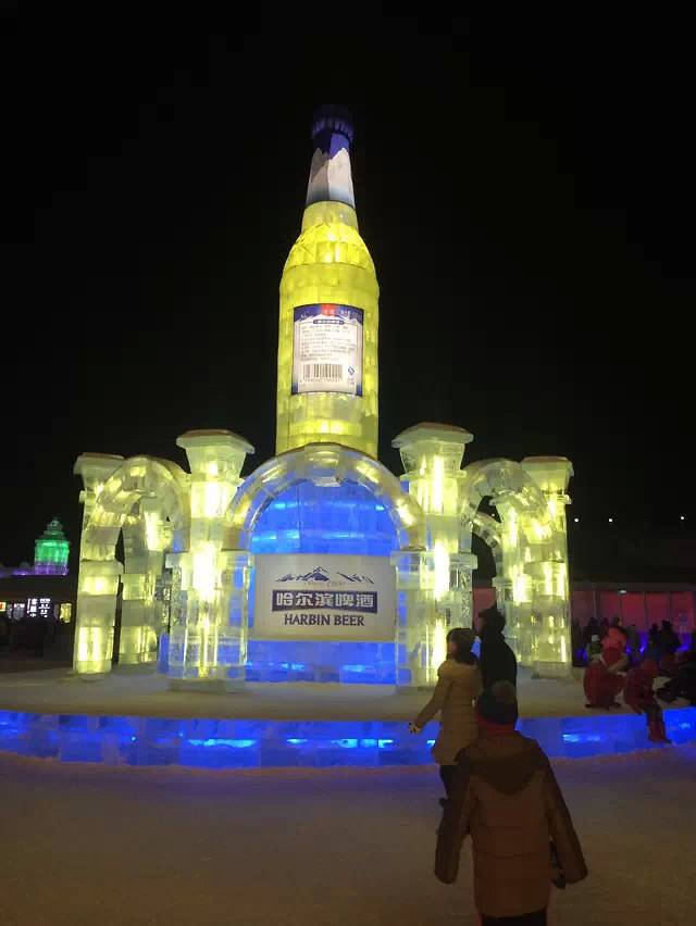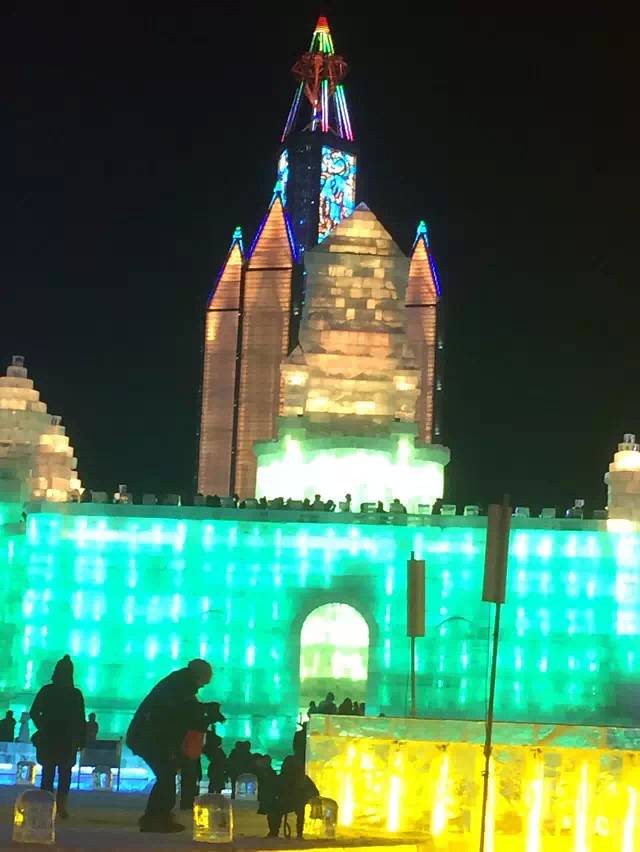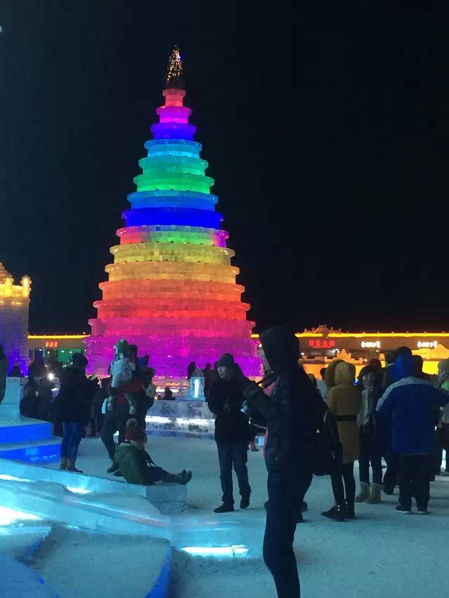 传说中的冰灯,哈哈,熊孩子很是开心,没有见过这种亮灯的冰