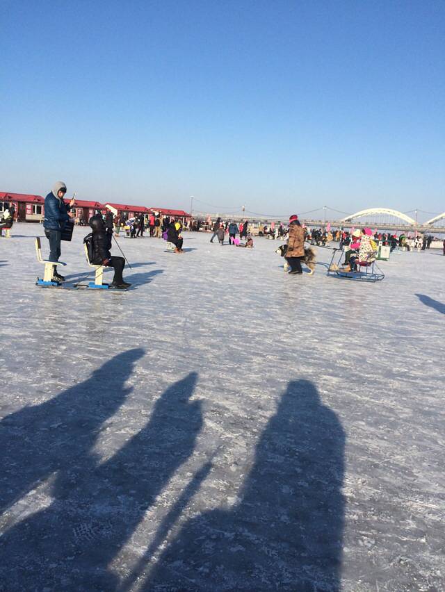 顺着中央大街一直走,松花江到了!后悔!又是冰上运动!