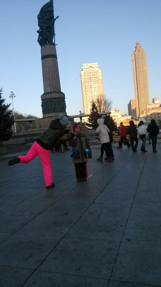 睡了一夜到哈尔滨了,我天儿,火车太热了!各种脱,热得睡不着了。一下火车,立马精神了,飘着毛毛雪。打车去了酒店,我们定的是中央大街的俊朗酒店,不错,内部很干净,就在中央大街,出行方便。放下行李,直奔冰雪大世界