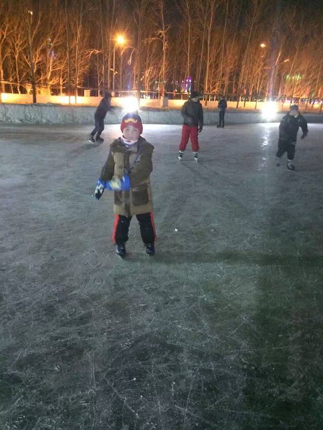 看看小家伙玩得多爽~哈哈,滑雪规定16岁以下必须请教练,105大洋。其他都还不错,通票,滑雪和冰刀需要交5元的卫生一次性袜子